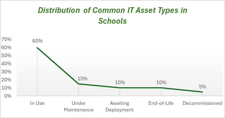 The above-mentioned chart helps school administrators quickly understand where most of their technology resources stand in their lifecycle, supporting data-driven planning for upgrades and replacements.